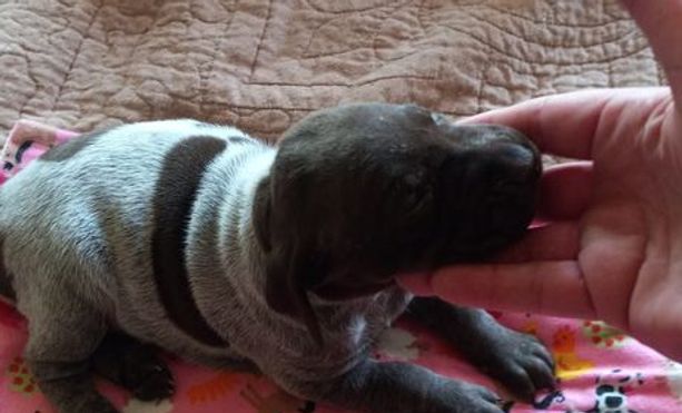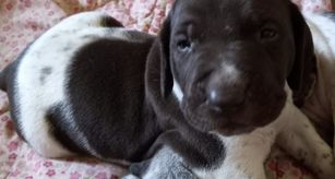 I'm Samantha W., the breeder behind Whitehouse GSPs located in Frankfort, KY. These puppies have been wormed, tails docked, dewclaws removed, currently being trained on puppy pads, and socialized. At 4 1/2 weeks their personalities are starting to bloom out. 5 females, one male.