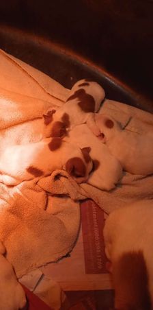 Our puppies include brown and white and black and white. Colors will vary depending on the parent dogs.