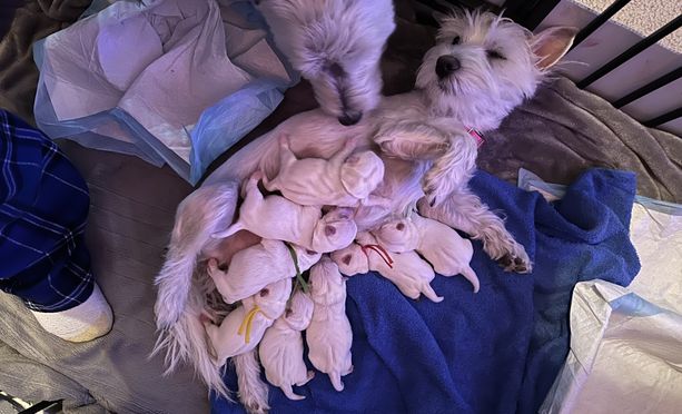 I'm Todd W., the breeder behind Whitehouse Westies located in Louisville, KY. My wife and I have been married 24 years and have 22 year old twins still at home with us. We got our first Westie when our twins were 6 years old. We fell in love with this breed. We got our second Westie a year later. Fast forward 15 years, we unexpectantly had to put one of our Westies down. In this new season of life we decided we wanted to breed. We got another AKC registered Westie (mom) and six months later we got another AKC registered Westie (dad). We had three Westies but unfortunately we had to put down our 15 year old in March (heartbreaking). Now we have a 2 year old mom and a 1.5 year old dad. They are family. We have such a love for dogs that we decided to breed to help others expand their families and to find their forever fur baby! We have wanted to breed for a long time so we decided to go for it! This will be our 2nd litter. Angel had 8 puppies her first litter, all perfectly healthy. She is due with her second litter in June 2024.