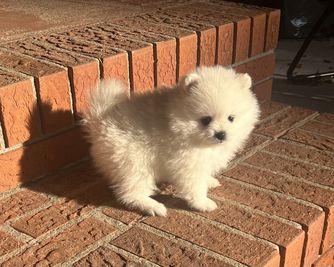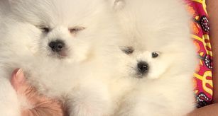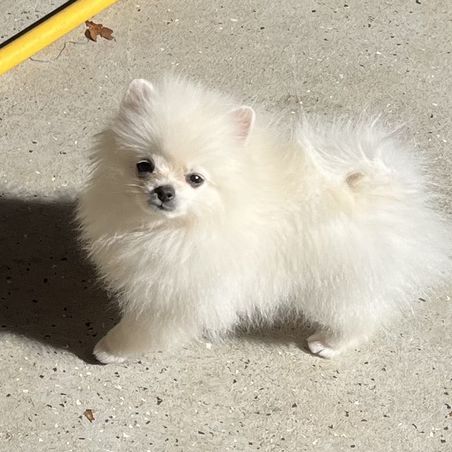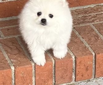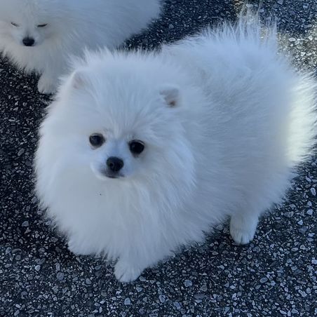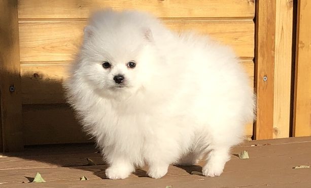 “I have very fine quality white pups, and I am normally only interested in selling them as pets at this time. Some may be show quality, as my Male Pom is Champion sired and is Triple Registered.