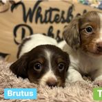 Our puppies include piebald, cream, chocolate, chocolate and tan, and dapple. Colors will vary depending on the parent dogs.