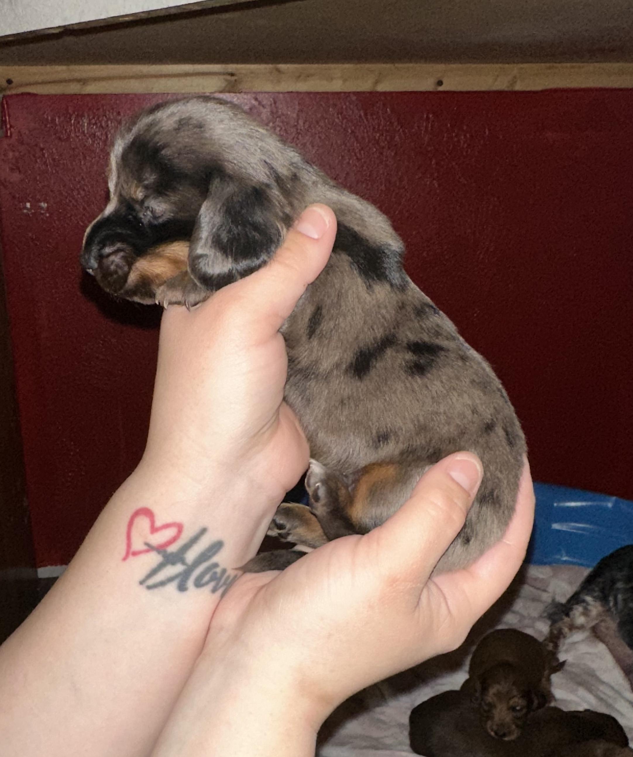 I'm Amber W., the breeder behind Whitley’s Dachshunds located in Texas. All of our puppies are bred, raised, and loved indoors to produce happy, healthy pets for those seeking the best family companion! We raise our dogs in our home right alongside our family. We love being able to match our puppies with families that are the perfect fit for their personalities.