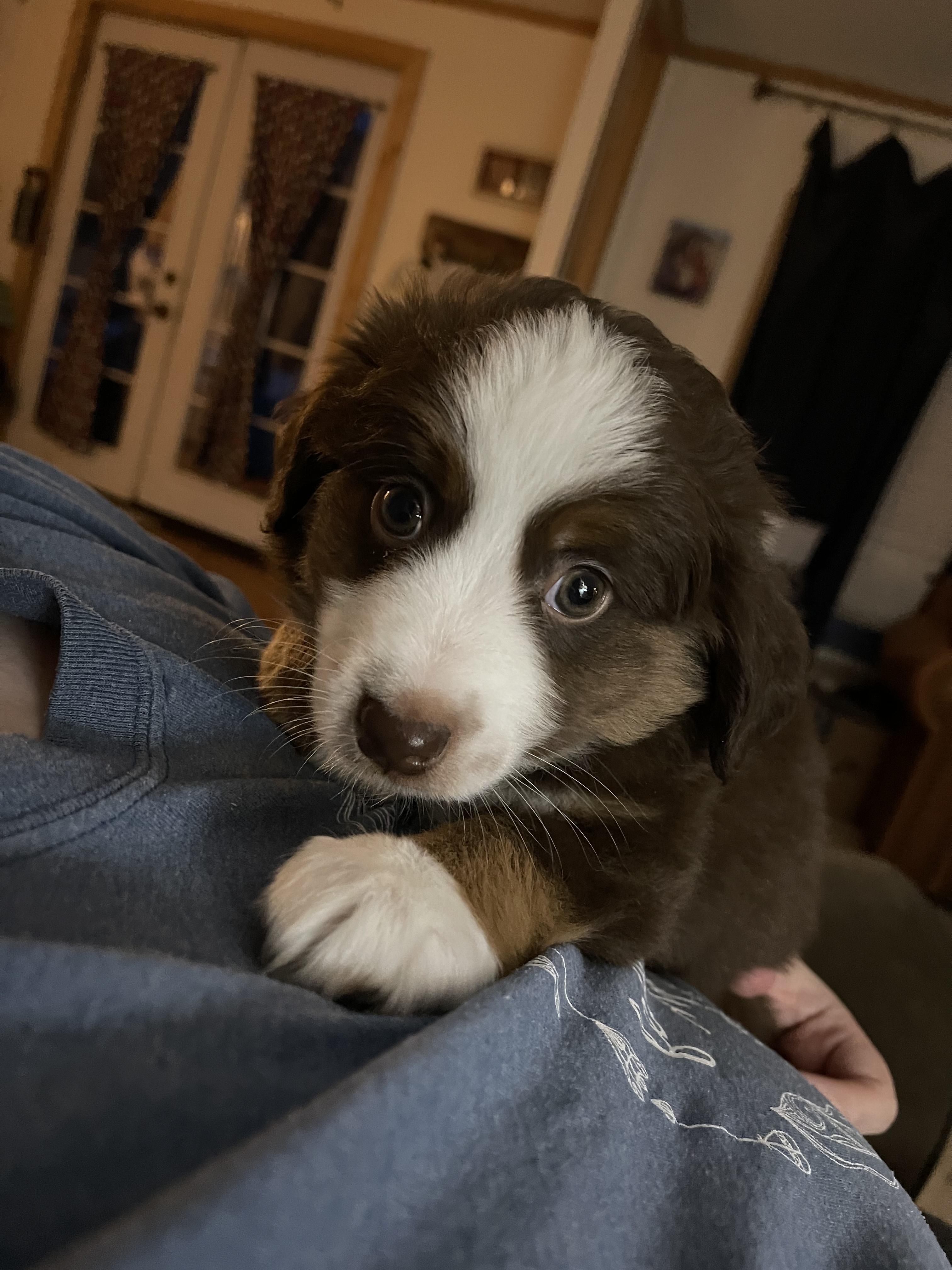 Our puppies include blue merle, black tri, red tri, red merle, red, and black. Colors will vary depending on the parent dogs.