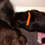 Puppies are now 4 weeks, almost 5 weeks old. Their personalities are really coming out. They are running, playing with toys and with each other. Little heart throb is a small little guy ( he now has a yellow collar in the new pic's, with a personality that is so sweet and cute. Little boy blue does have an orange collar now In the new pictures, he is a small guy also, I do believe his fur is going to be a mega coat and be the size of his father. He is shy but does love to be loved on and does play with toys and his brothers and sister. Princess is a beautiful liver and I believe that she will be a mega coat. She loves to be loved on and is such a sweetheart, she loves to play with toys and her siblings. They are all eating puppy food that is semi soft and should be weaned from their mother soon. Their teeth have come in and they are learning to chew on their tots for teething. Can't wait to talk to you about my sweet fur babies.