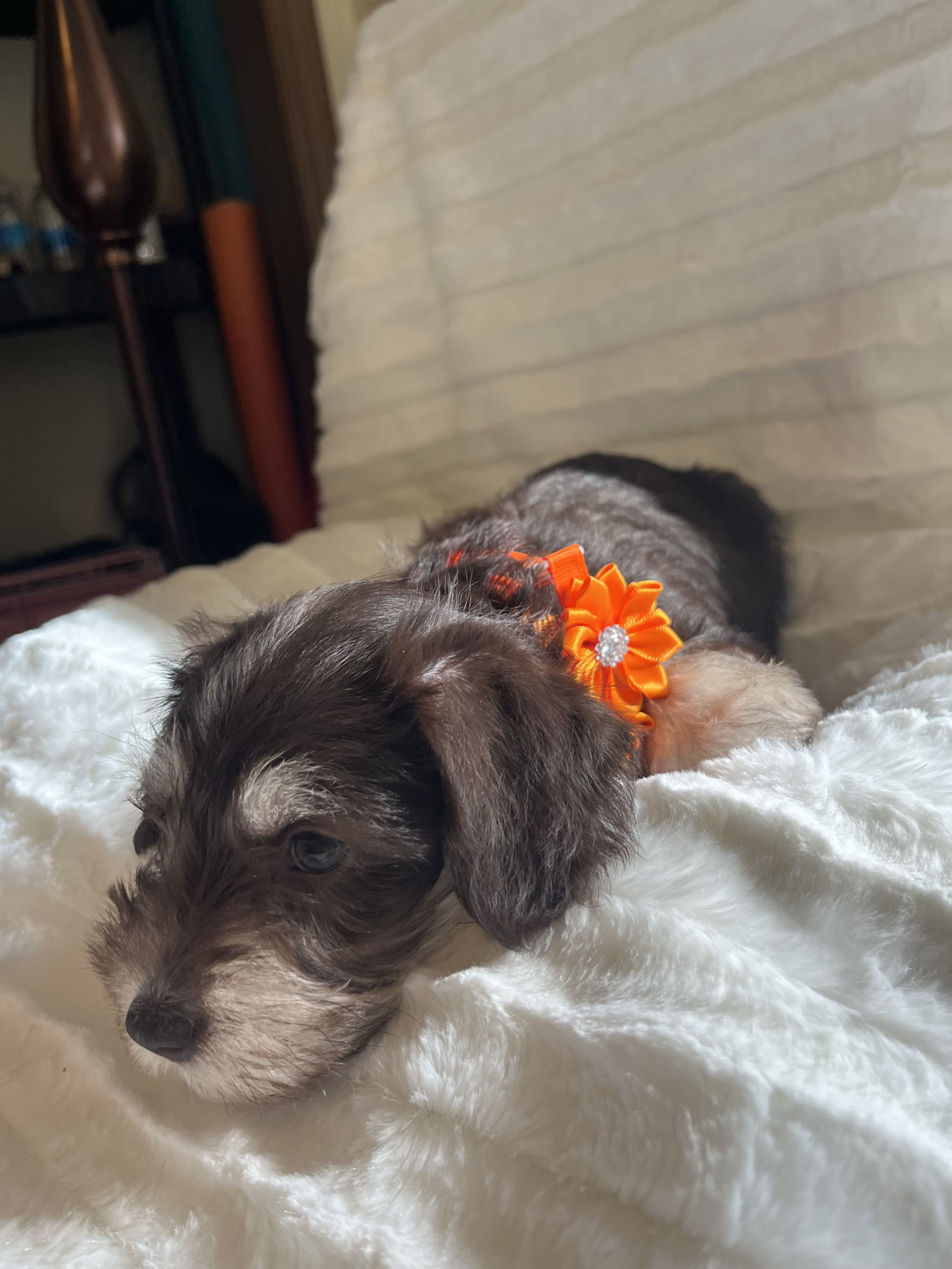 I'm Cynthia W., the breeder behind Whitts Black Pearl Miniature Schnauzers located in Bridgeport, AL. All of our dogs are loved as family members. We cherish our puppies from birth up until they leave our arms to snuggle into yours! We work hard to breed exemplary dogs that are well taken care of from day one and are prepared to excel in loving and caring homes. We love our dogs and puppies, and we know you will too! I will keep you updated on your puppy as much as you would like from taking videos and pictures of them daily if you want. I believe in keeping you informed of how your baby is doing each day. If you want to do video calls with me to just watch them, I will gladly do that. Each day is a special time since they are learning to do so much. I also think that you talking to them helps to make a better connection since they will recognize your voice. If you have any questions please ask.
