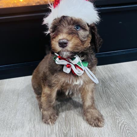Mini Whoodles are here! These babes should mature around 20 lbs and will be ready to go on 2/13/25!