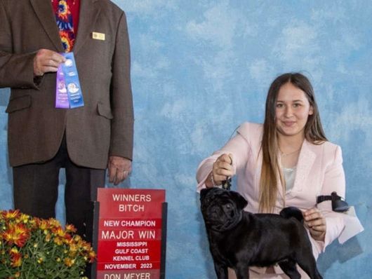 Eko obtained her AKC Championship at 17 months old after a long break from showing.