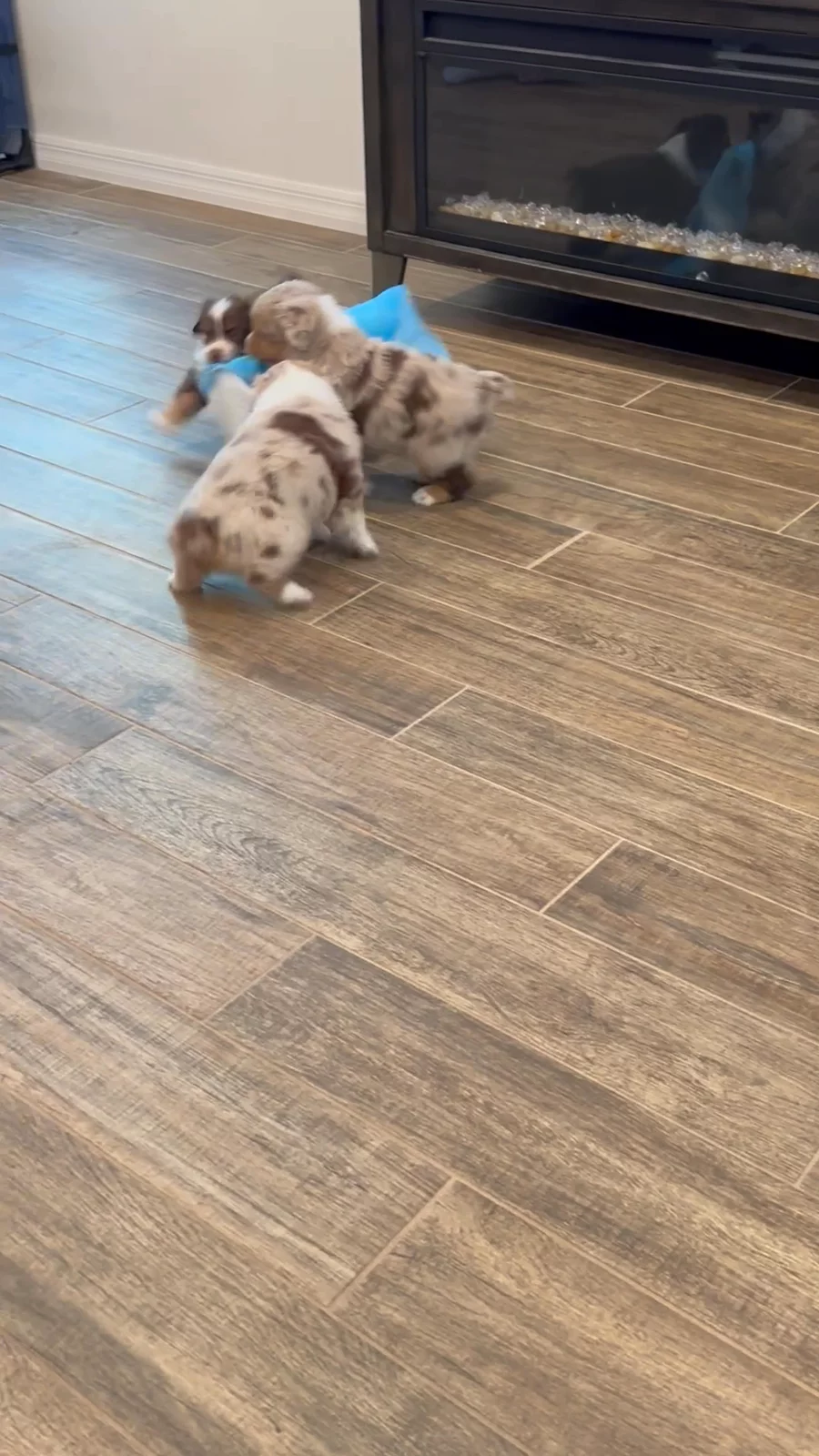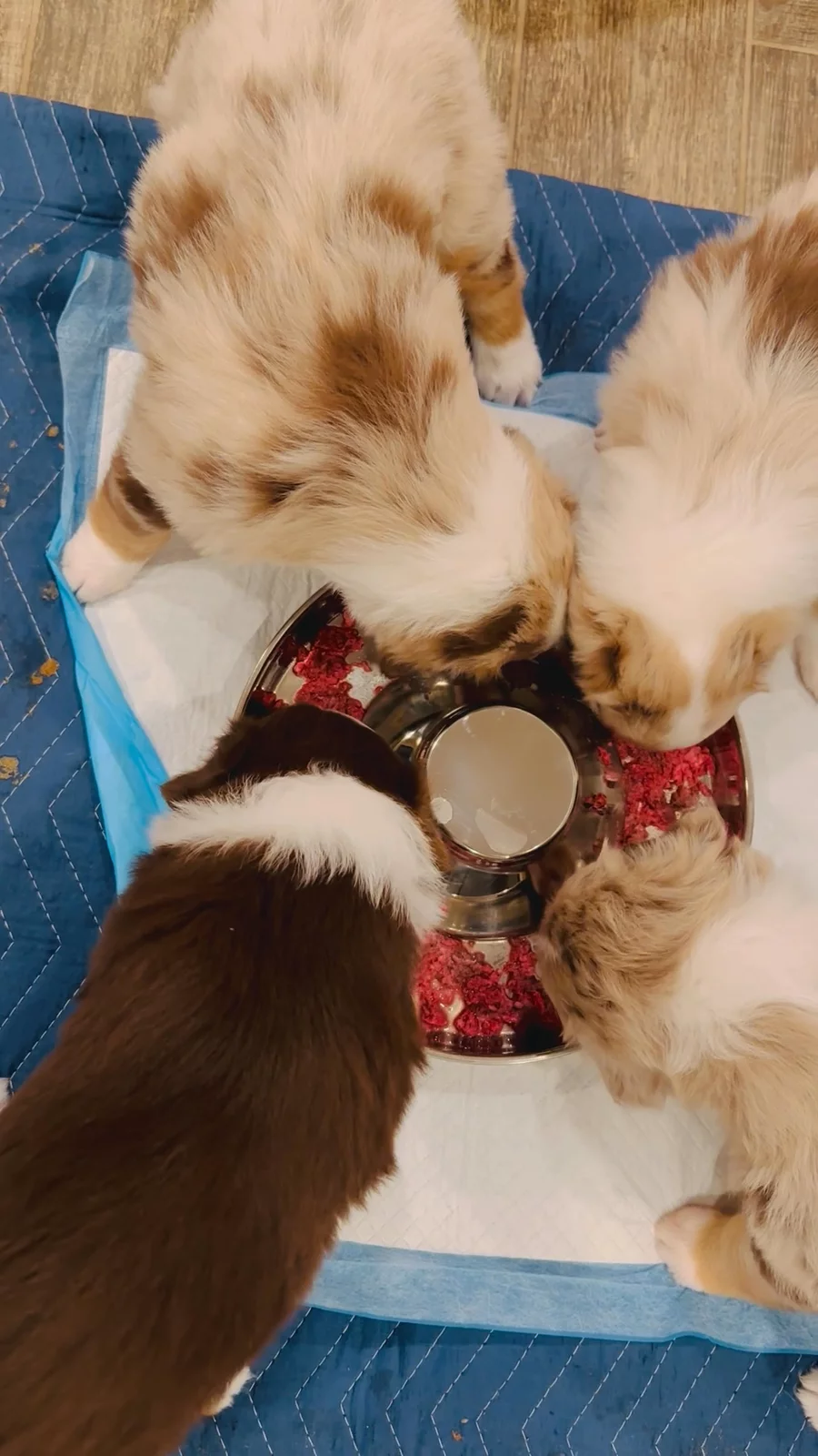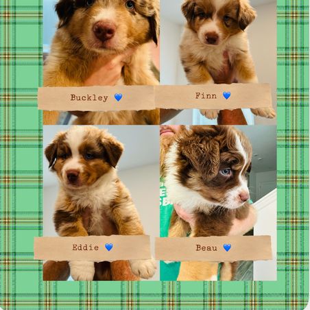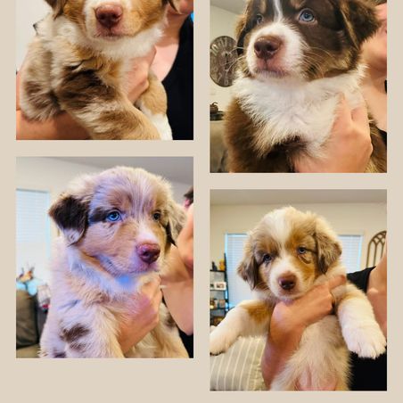 Our puppies include red merle, blue merle, and red tri-color. Colors will vary depending on the parent dogs.