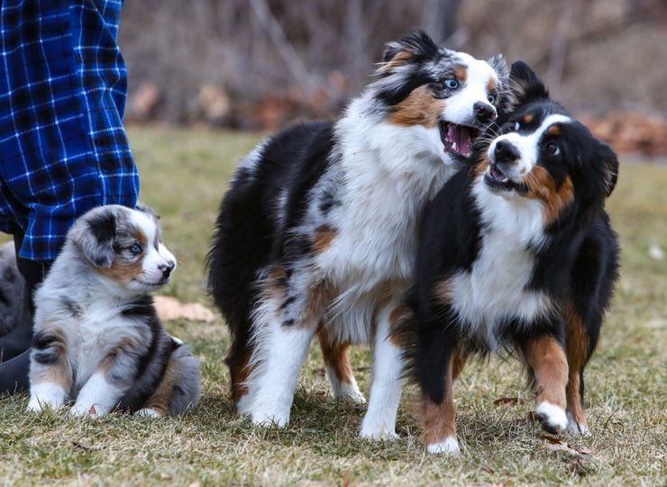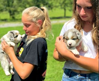 Our puppies include black & white, red & white, red tri-color, black tri, black, red merle, blue merle, and red. Colors will vary depending on the parent dogs.