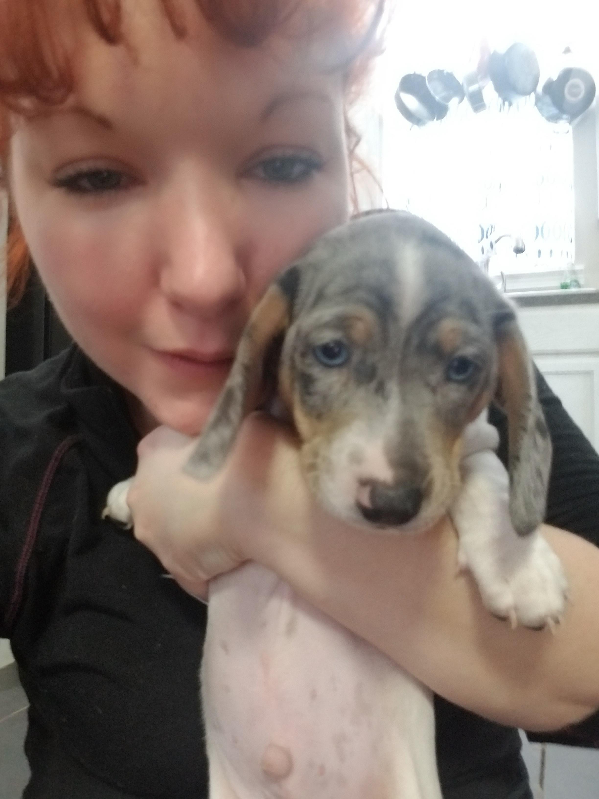 I'm Rebecca G., the breeder behind Wigglebutt Mini Doxies located in Howell, MI. I'm a loving, small in-home breeder who has a love of Doxies. My kids and I love raising our puppies and making happy clients! Our goal is always to make sure our dogs and puppies are well taken care of and have happy lives. We put in a huge amount of work in order to make that happen, and we are proud of what we've accomplished with our program!
