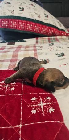 Meet Grinch, it was hard to name him this as he's so sweet. He's the only puppy left from Dot.
