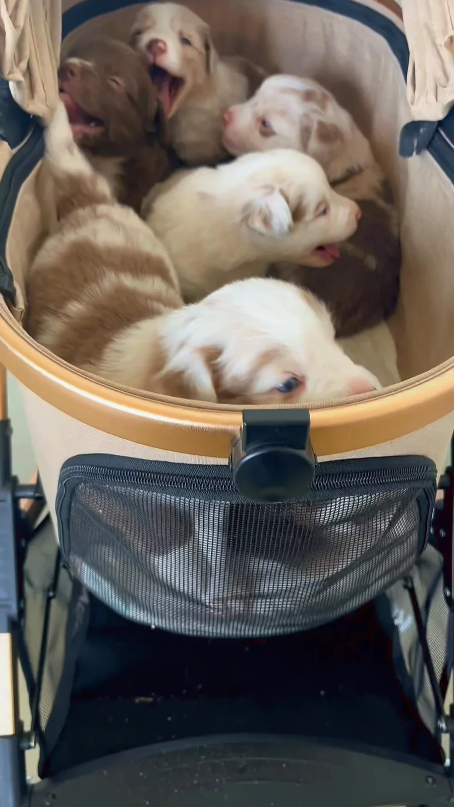 Socializing Baby Puppies? We LOVE a stroller to stay safe and germ free while still getting to experience new sights, smells, and sounds ❤️