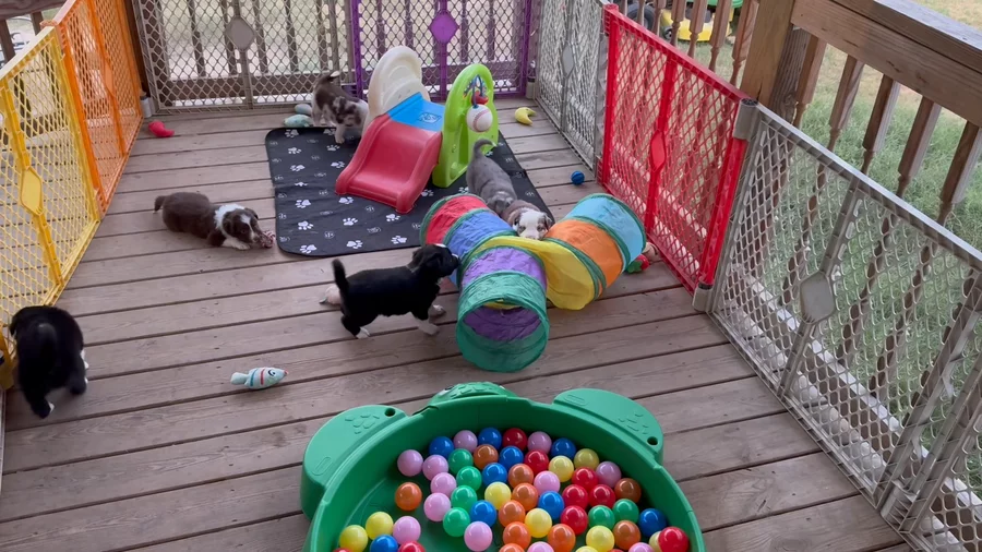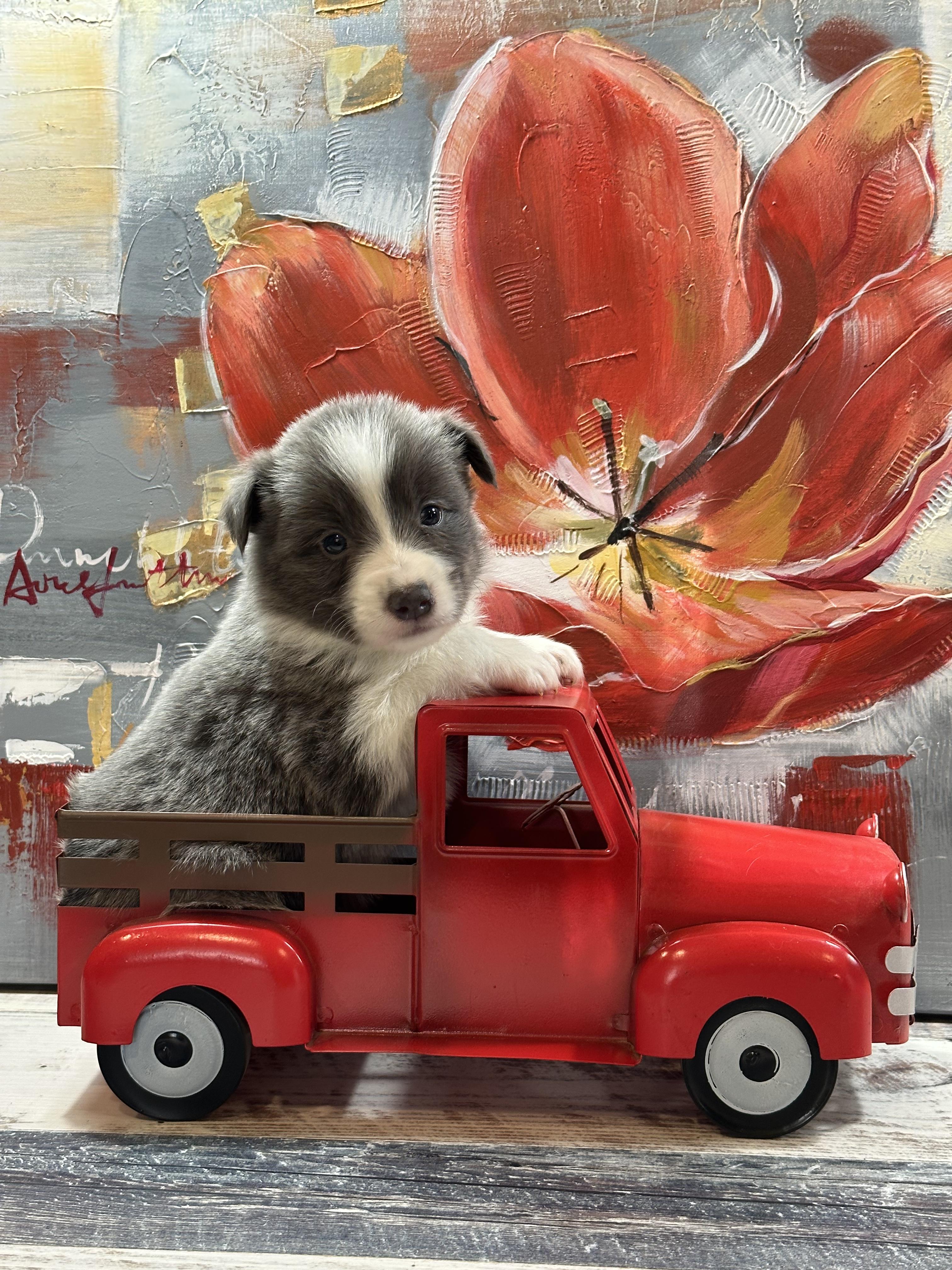 Our puppies include slate merle, blue merle, red merle, blue, lilac, red, sable, sable merle, white and blue, white and blue merle, white and red, white and red merle, and slate. Colors will vary depending on the parent dogs.