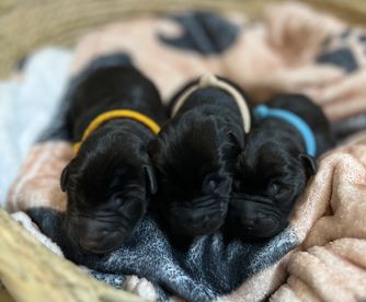 Our puppies include black and yellow. Colors will vary depending on the parent dogs.