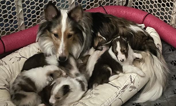 Sometimes people ask me what breeding is like it’s a lot of work, but it’s so worth it. Especially when I have pics like this this is why I love shelties. ❤️ my sweet Elaina is such a big help too. If you get a puppy from me, just know that they are used to being around other dogs and used to being loved by kids a lot ❤️❤️❤️❤️❤️.
