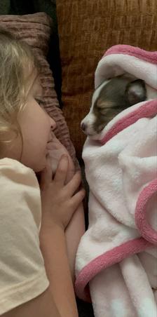 Remi is the sweetest dog and the best mother she loves to do tricks and the best snugglier.