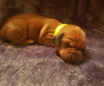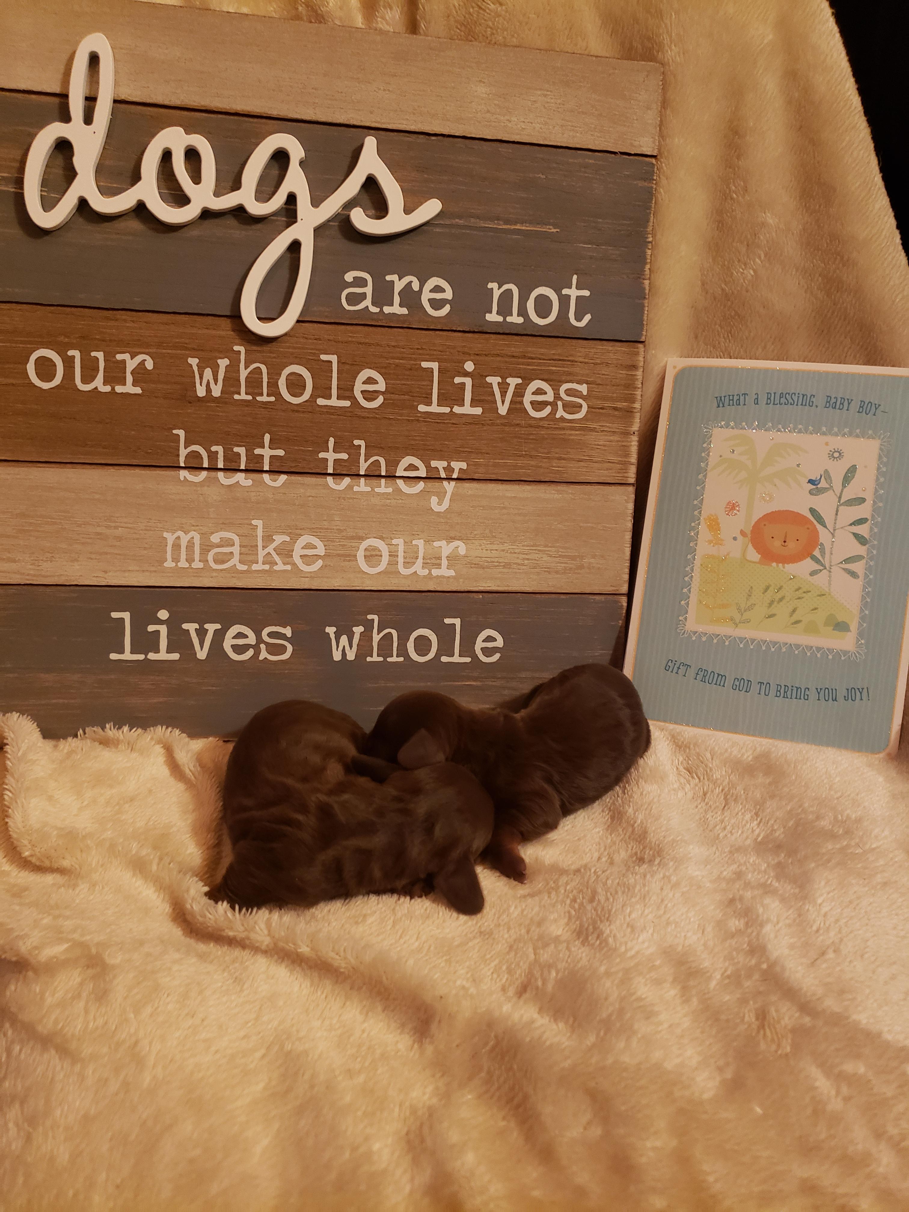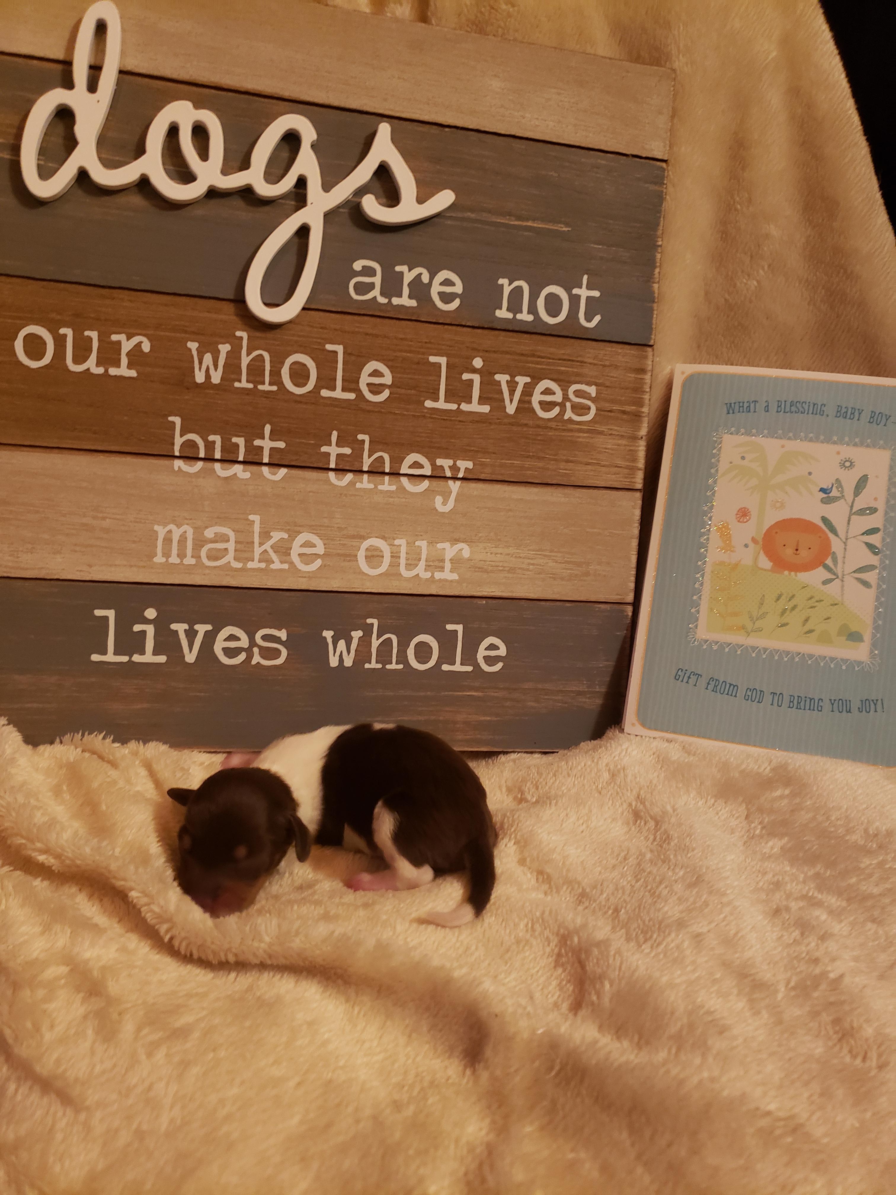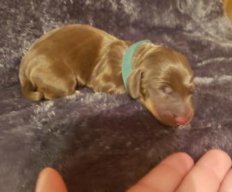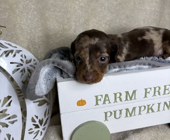 Gabby was very knowledgeable and has helped with the entire process. She answered all of our questions as this is our first mini daschund puppy. She sent pictures of Cooper before hand and lots of information on his parents. Vet records were complete and she has continued to be available with questions as he grows. We are very thankful for her.