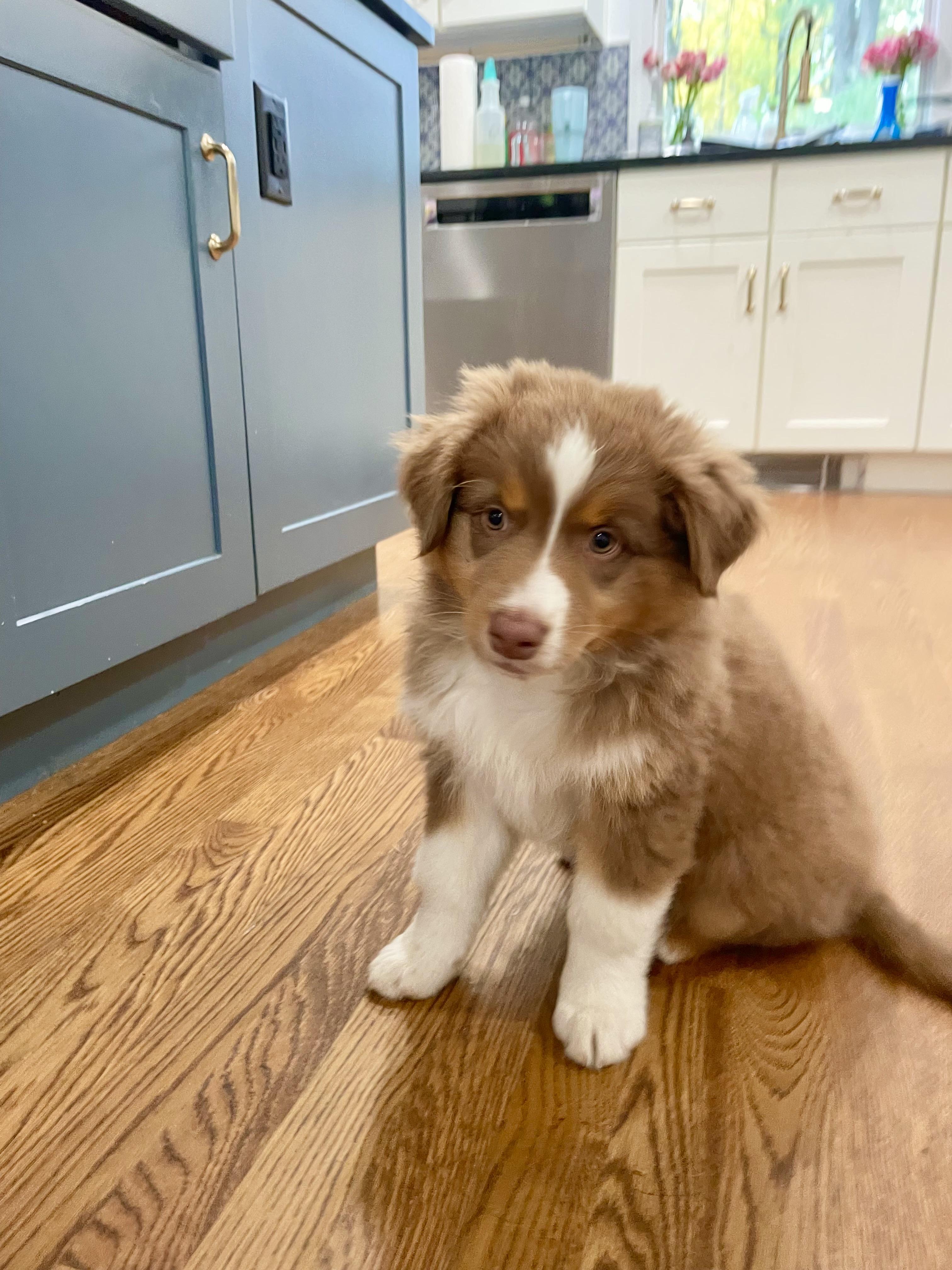 I'm Julie and Jim S., the breeder behind Wild Atlantic Aussies located in Sudbury, MA. Our puppies are trained on- and off- leash, sleep through the night, are crate trained, and mostly potty trained. They have had tons of socialization with people, including lots of children, and also with dogs of all sizes and ages. Any home will be enriched and lucky to have them.