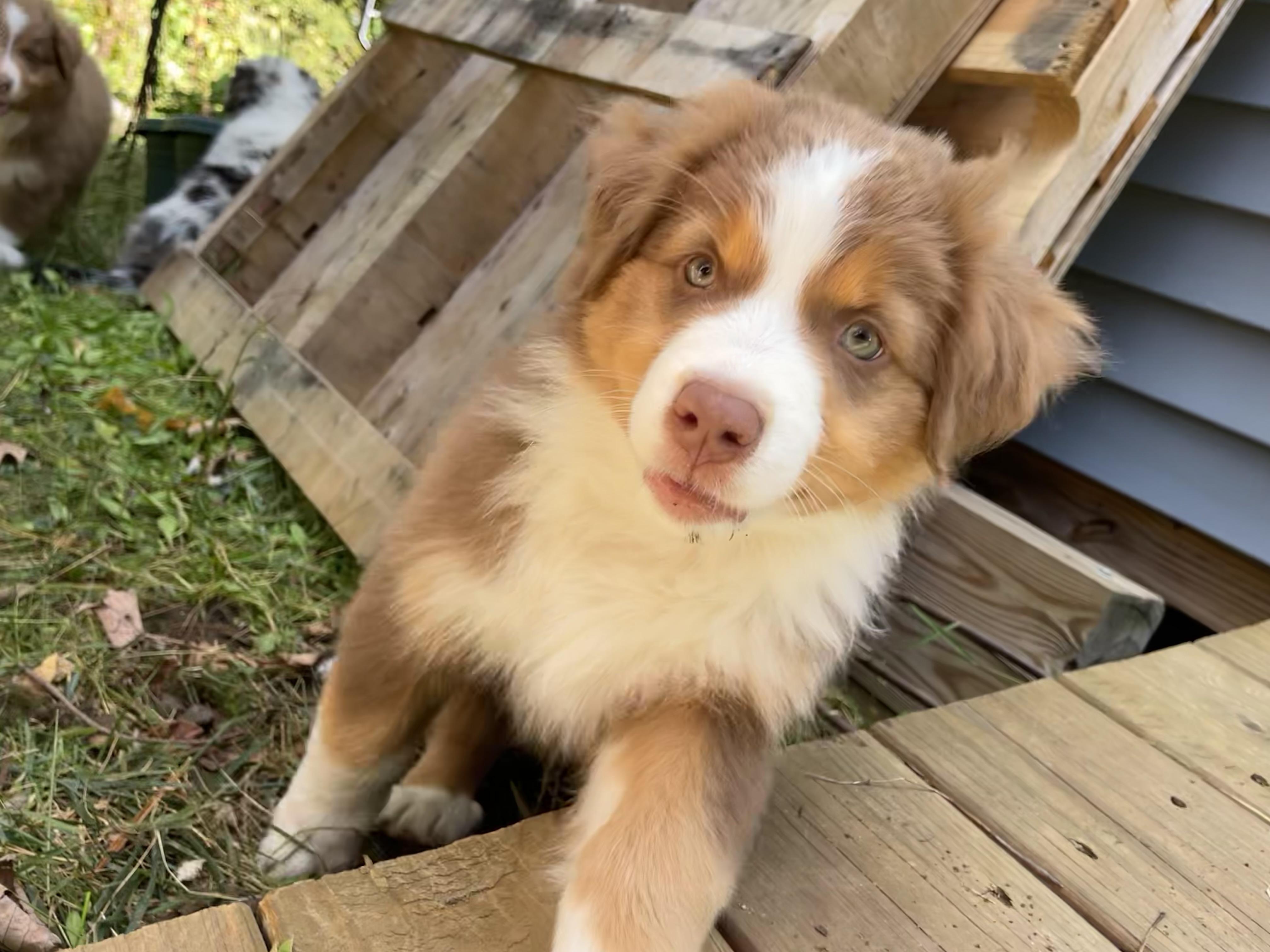 Our puppies include red merle, blue merle, black tri-color, and red tri-color. Colors will vary depending on the parent dogs.