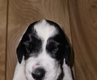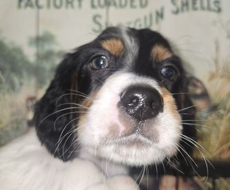 Sire is Ryman Setter orange and white color with Good OFA Hip rating. Dam is black and white has Good hips and elbows rated OFA.