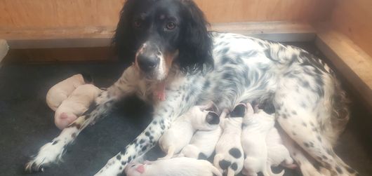 ANGEL is a female English Setter. Carefully selected as a great representative of her breed, Jenny decided to make her part of their program. Jenny has passed Good Dog’s screening process, which involved a review of their breeding practices, environment, and the mental and physical health of their dogs.