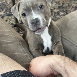 We did a lot of research on breeders of blue Staffies and hands down Debbie is the best! She is transparent and does extensive testing to ensure the good health of the dogs that she breeds. She was very easy to work with and very responsive to any questions I had. She sent me pictures and videos of our boy growing up and playing with siblings. Our boy, Maximus, came to us healthy, confident and with the best personality. He’s very playful and loving and absolutely beautiful! If you’re looking for a breeder, I highly recommend Debbie and would absolutely get another puppy from her. Maximus was worth every moment we waited for him, he’s perfect! ❤️