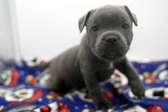 Debbie at Wild Blue Staffords was incredible to work with. She answered all my questions quickly and provided me with updates and photos as my little "Raphael" was growing up. Our puppy came very healthy and well socialized with an amazing personality. You get the genuine impression that Debbie truly cares for every puppy she raises. I would absolutely return to her for a future Staffy.