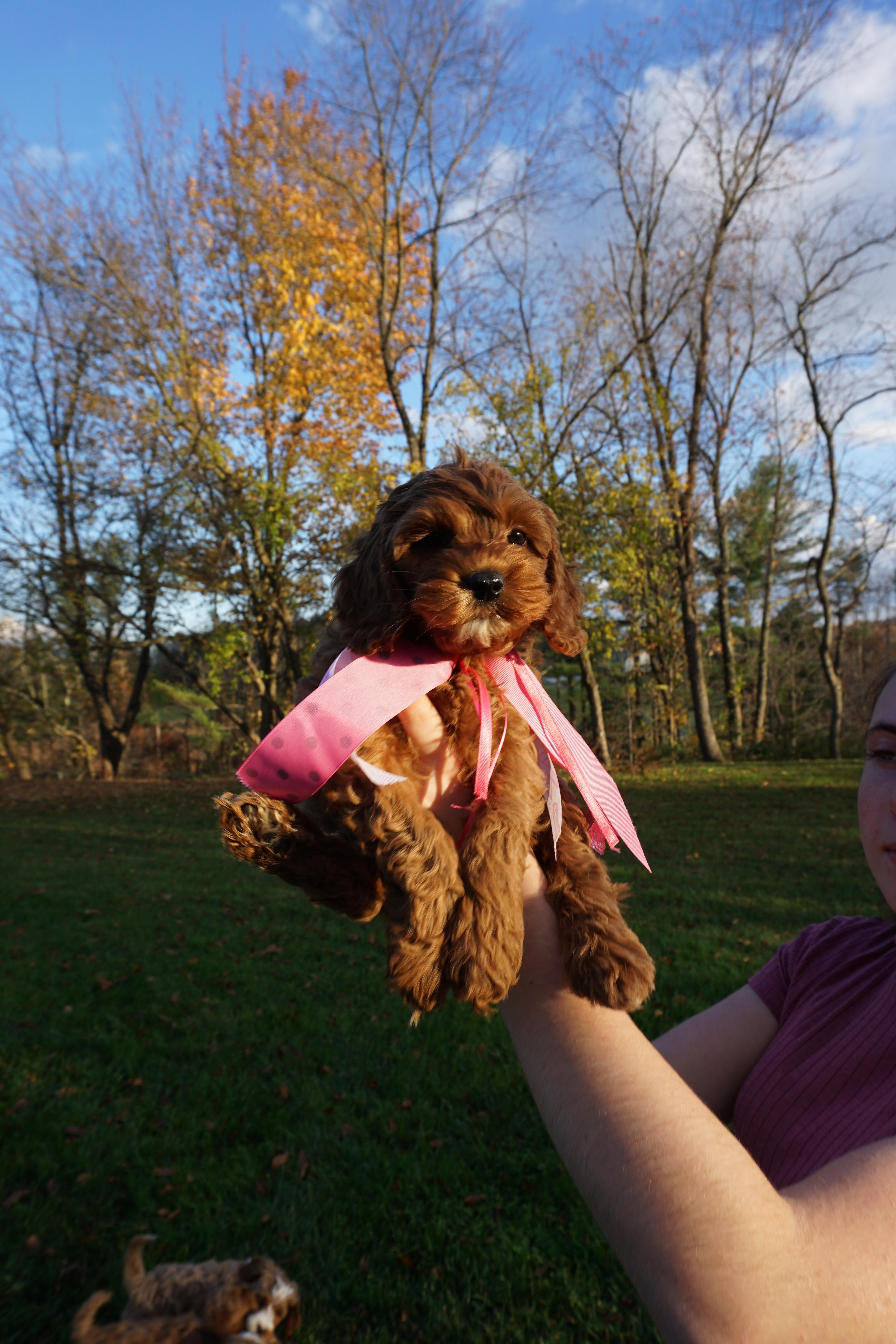 Our puppies include caramel, caramel red, chocolate, black, and tri-color. Colors will vary depending on the parent dogs.