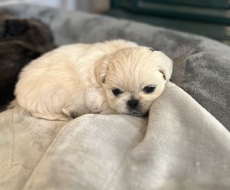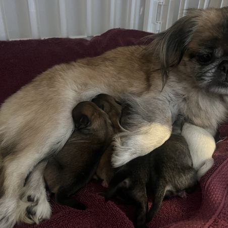 Poof is a Ckc registered Pekingese. She’s the sweetest dog, loves everyone and has a very calm temperament. She is my shadow on most days. Puppies from past litters are all healthy with no issues.