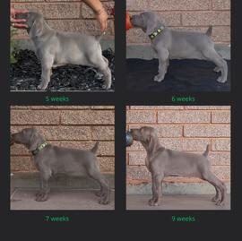 Our puppies include silver gray and gray. Colors will vary depending on the parent dogs.