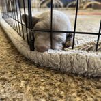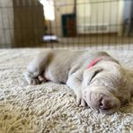 Red(Male) is the chuck of the family. He has been and probably always be a bigger structured dog. He opened his eyes earlier this week and has been trying to walk around. We’re still a little wobbly but we’re growing quickly so not much longer. He is full of personality and is often found either eating(he has to keep up the XL size) or asleep on his back, paws and belly up. ❤️
