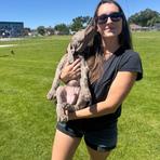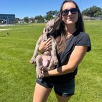 Oakley is just a family pet who enjoy walks, fetch, and lots of cuddle time. She is tender hearted, extremely loving, and my personal "Heart Dog." She exhibits a very docile temperament and makes a great house pet. She loves to explore when we go out for walks and hikes, but she ultimately choses to stay close by and it's generally at a "Heel" position after a few good runs. I would consider her a true version of a "Velcro dog." She loves her siblings and plays well with all of our dogs. Be sure to check out her pictures because she smiles in just about every photo.