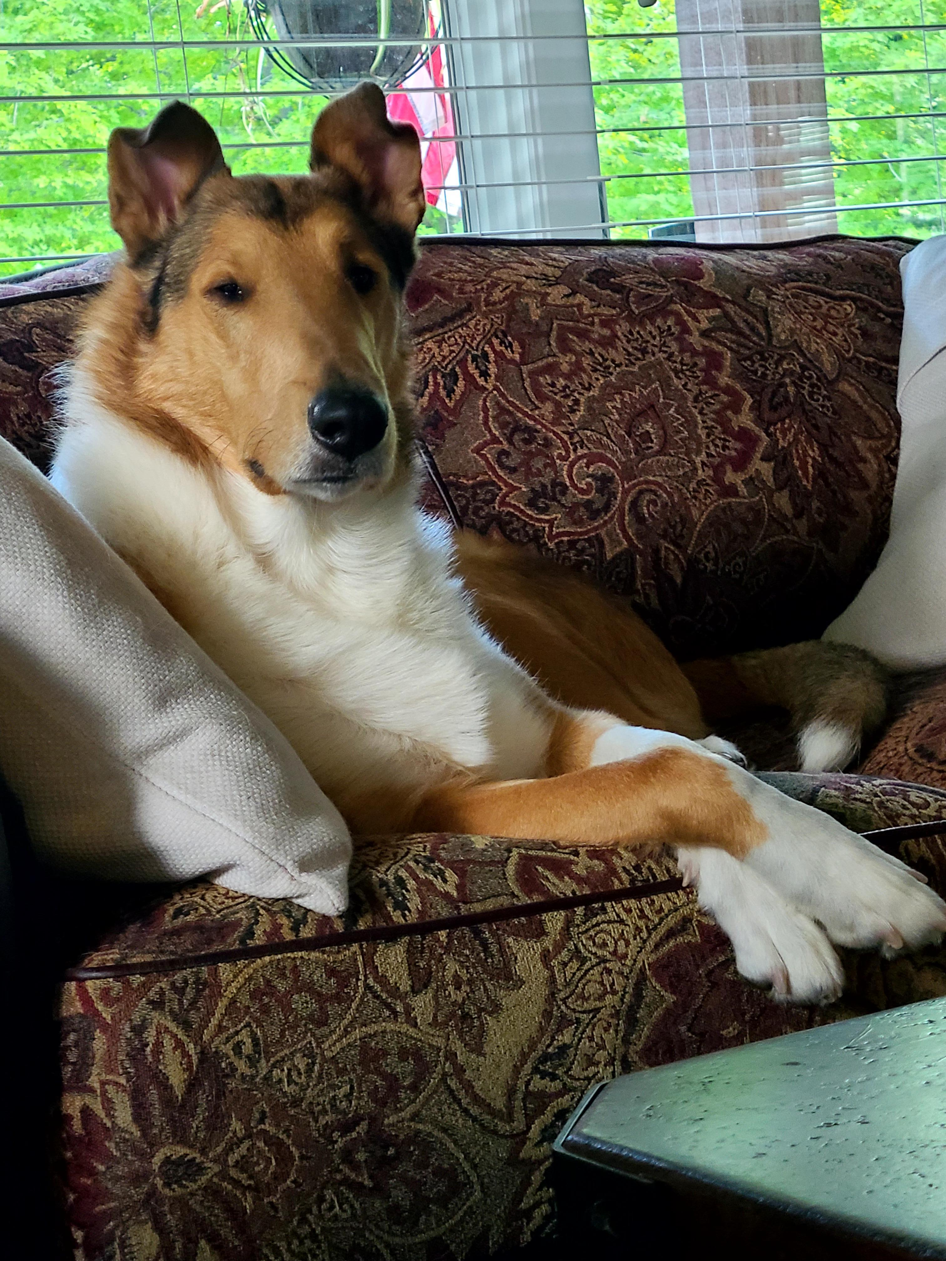 Risky is a male Collie. Carefully selected as a great representative of his breed, Shelley decided to make him part of their program. Shelley has passed Good Dog’s screening process, which involved a review of their breeding practices, environment, and the mental and physical health of their dogs.