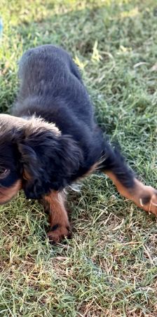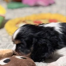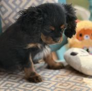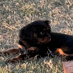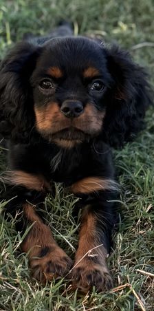 Fala is extra special to us! Not only is she perfect to us because she exemplifies the Cavalier temperament, but she is stunning as well. We have spent years health & genetic testing as well as looking for the perfect temperament to achieve our first black Cavalier that we bred. She has not disappointed us in anyway. She is perfect! Once she grows up and passes all of her physicals she will have her own babies.