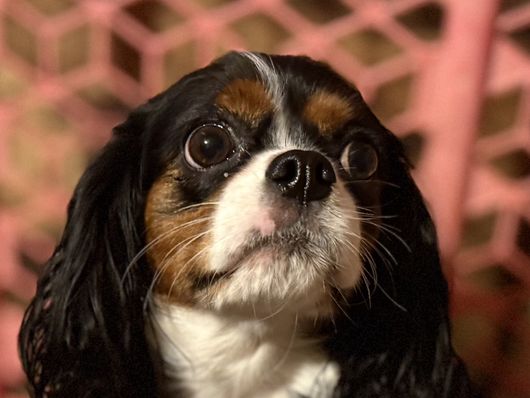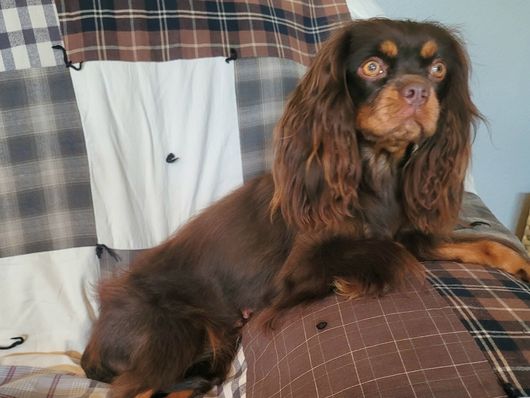 Kodiak is truly my heart dog! I am her person. She has a very kind giving temperament typical of a Cavalier. She is confirmationally correct and is enrolled in the Virginia Tech. Heart study program and has tested completely clear.