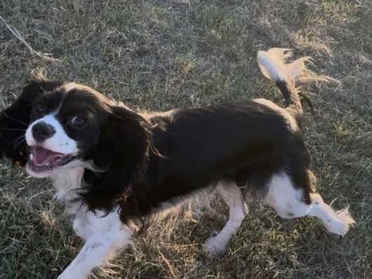 Meadow is truly a happy and easy going Cavalier. She is happy to climb in anyone’s lap and hold them down with kisses and snuggle.