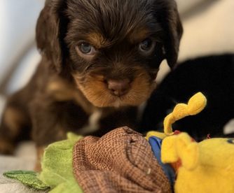 Our puppies include blenheim, ruby, black and white, tri-color, black and tan, and chocolate. Colors will vary depending on the parent dogs.