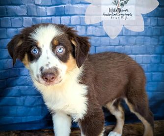 I'm Meleah s., the breeder behind WildBloom Australian Shepherds located in Owego, NY. We take pride in raising each one of our wiggles to ensure the best start to the rest of their life possible from the best vet care to daily family socialization and breeder support to help your new best friend.