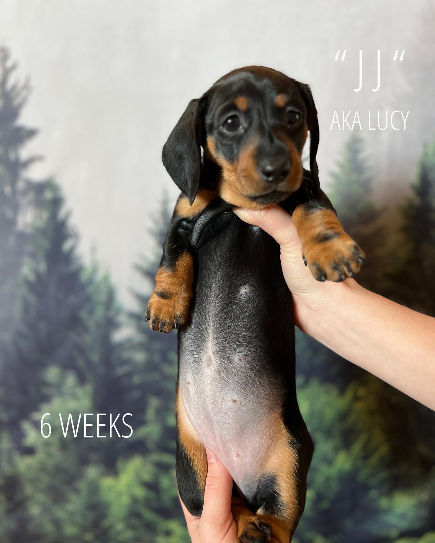 I'm Janelle B., the breeder behind Wilderness Weenies located in Lexington, KY. Responsible & ethical breeding is our top priority! We breed to improve by providing our doxies with routine vet care, screening for genetic health problems, regular exercise, and good nutrition. Our sausage dogs are AKC registered, live in our home full time & are treated like family.
