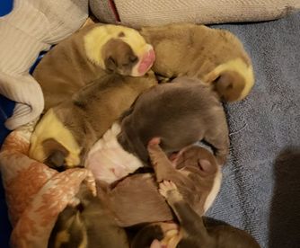 I have been involved in breeding dogs, horses, goats & cows most of my life. In 2002 I purchased and started showing a Belgian Malinois. I learned a lot about proper breeding and genetic testing. After breeding Malinois for a few years I decided to go with more family-friendly breeds. I now have English Bulldogs and Bernese Mountain Dogs.
