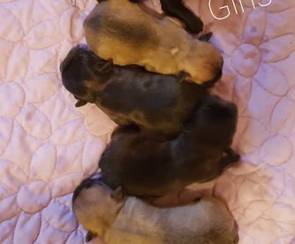 I live on a small cattle ranch. We have lots of room for our dogs to run and play. Puppies are exposed to many different noises and smells. They are well socialized by the time they are ready for their new homes. They live in the house and have access to outside through a doggy door which they learn to use by 6 weeks old. Sure makes cleanup easier...