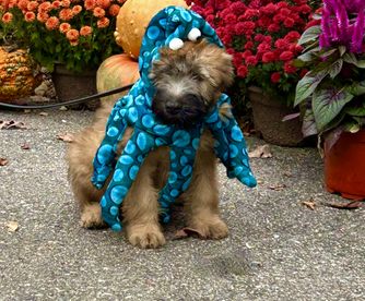 Top Gun is a male Soft Coated Wheaten Terrier. Carefully selected as a great representative of his breed, Stephanie decided to make him part of their program. Stephanie has passed Good Dog’s screening process, which involved a review of their breeding practices, environment, and the mental and physical health of their dogs.
