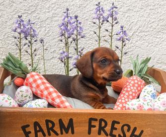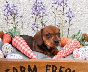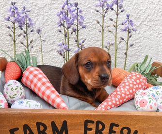 Honey is a female Dachshund. Carefully selected as a great representative of her breed, Briauna decided to make her part of their program. Briauna has passed Good Dog’s screening process, which involved a review of their breeding practices, environment, and the mental and physical health of their dogs.