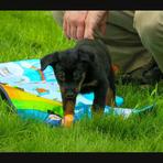 Puppies are four weeks old and beginning to be quites the handful. We love watching them play. They are being with puppy culture protocols, and we started the barrier exercises along with daily body handling and noise desensitization.