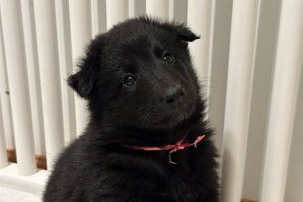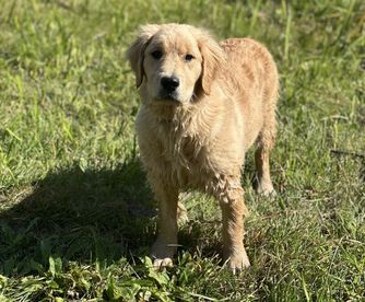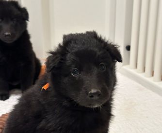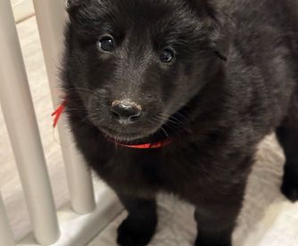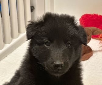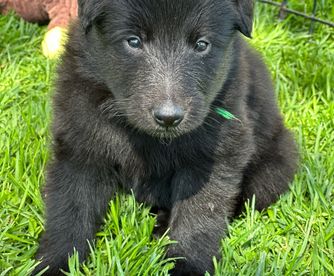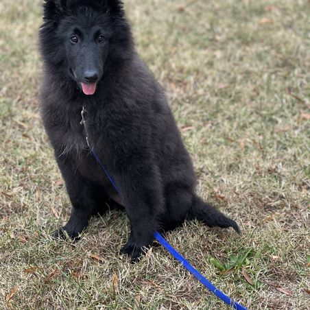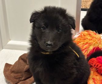 Our Belgian Sheepdog puppies are black. Golden Retriever puppies are golden. Colors will vary depending on the parent dogs.