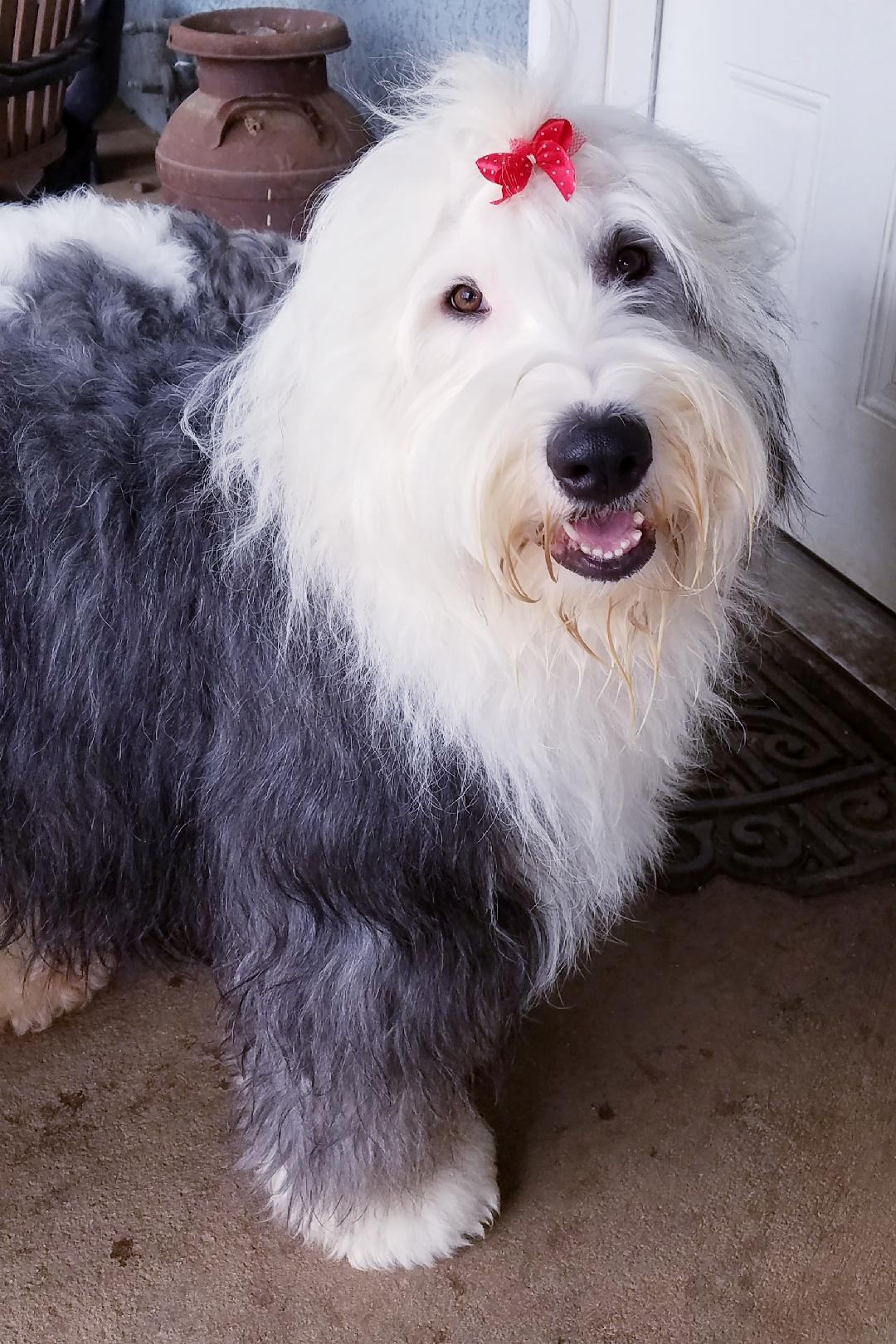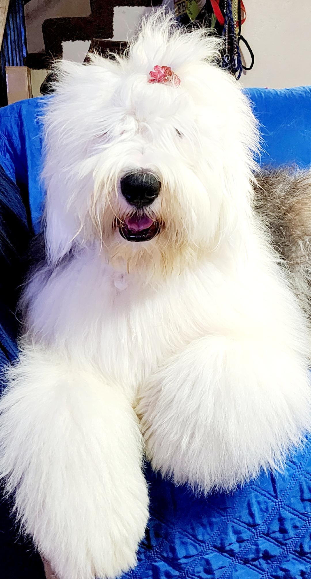 Gracie is a female Old English Sheepdog. Carefully selected as a great representative of her breed, Mary decided to make her part of their program. Mary has passed Good Dog’s screening process, which involved a review of their breeding practices, environment, and the mental and physical health of their dogs.
