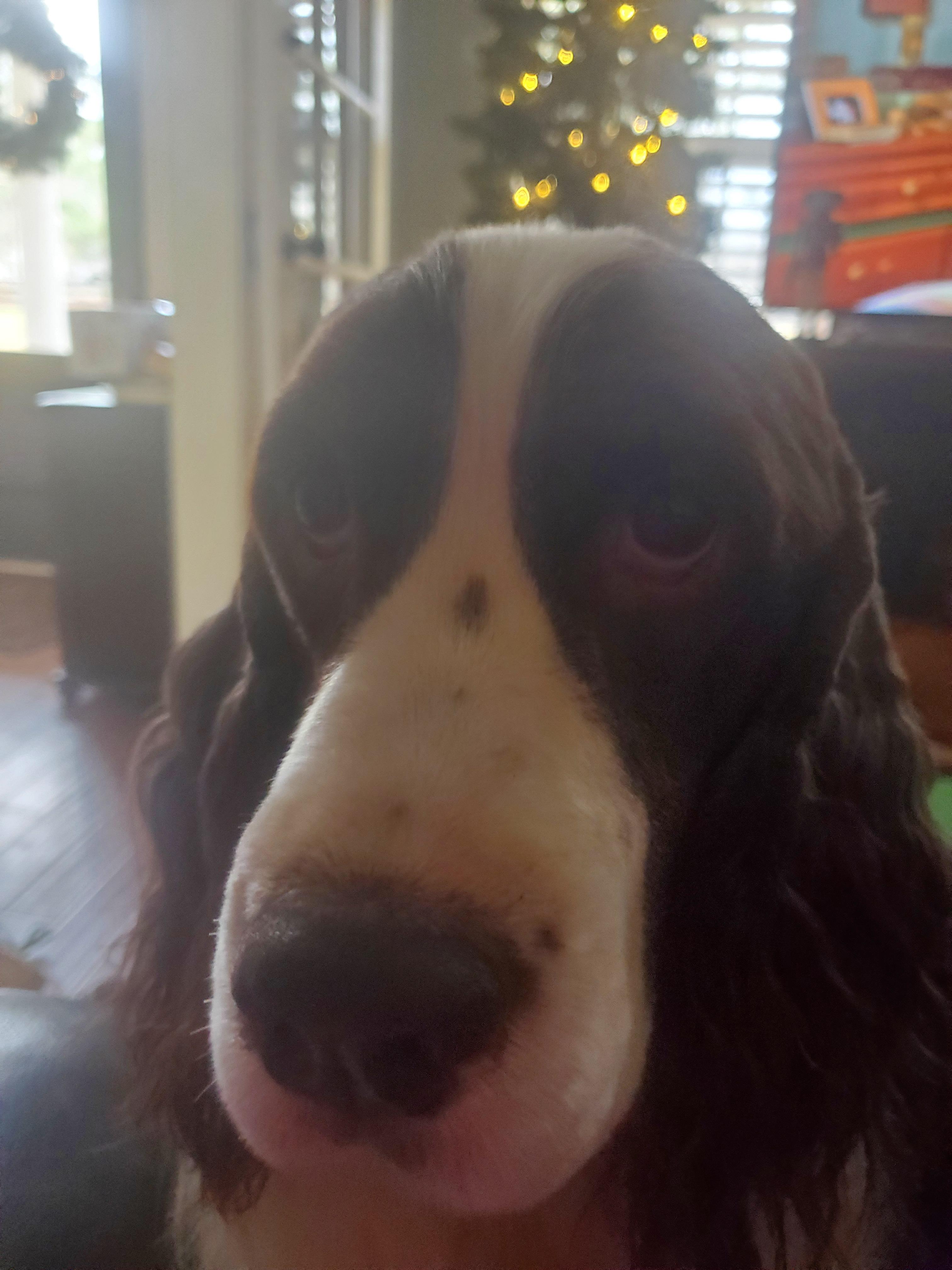Addie is my cuddle bug. She love to snuggle on the couch and sleep under the covers in bed. Of all of our springers she is the most talkative and communicates her needs well. She passes on her calm, yet talkative nature, her puppies.