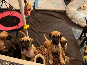 Our puppies include fawn and black. Colors will vary depending on the parent dogs.