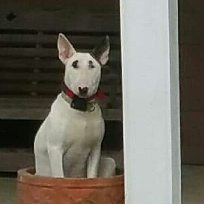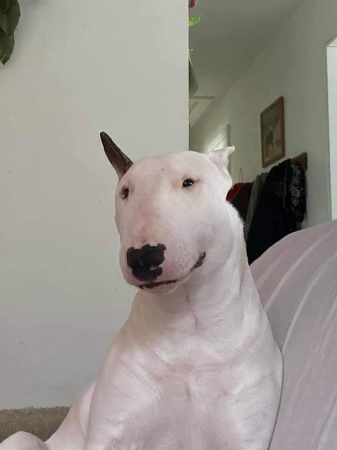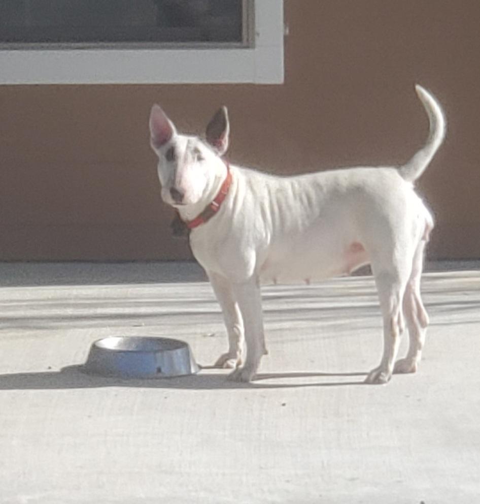 Roxanne is a female Bull Terrier. Carefully selected as a great representative of her breed, Thomas decided to make her part of their program. Thomas has passed Good Dog’s screening process, which involved a review of their breeding practices, environment, and the mental and physical health of their dogs.