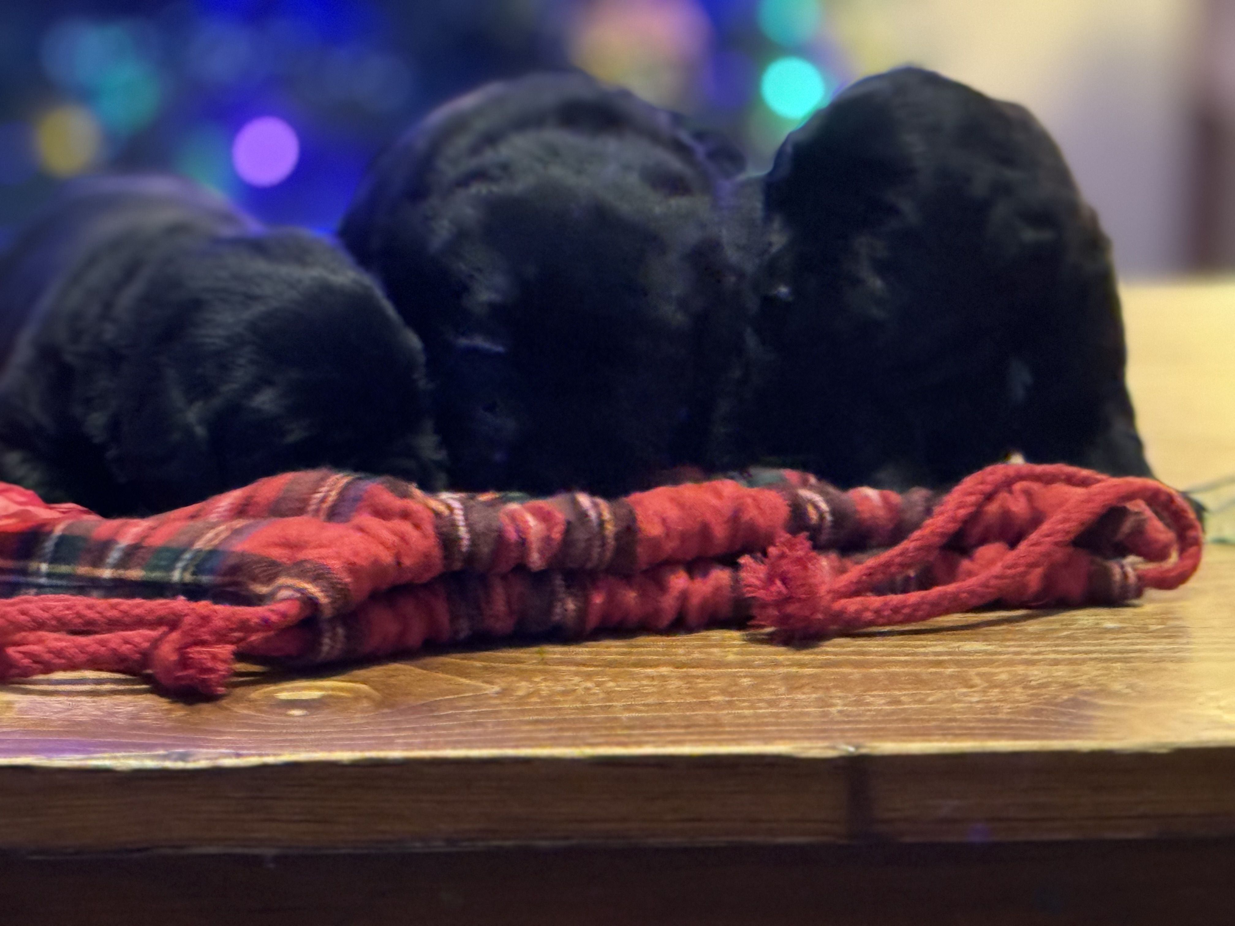 Our puppies include black, chocolate, and yellow. Colors will vary depending on the parent dogs.